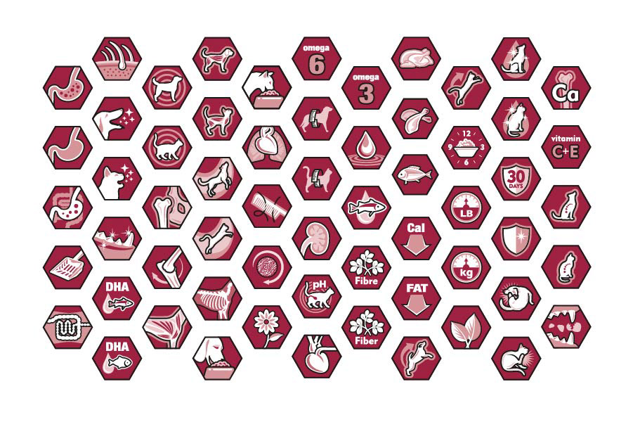 As the client renew their entire pet food package system, they needed the icons on the packages to show the potency of ingredients. The graphics should interpret the contents clearly for customers in any language.