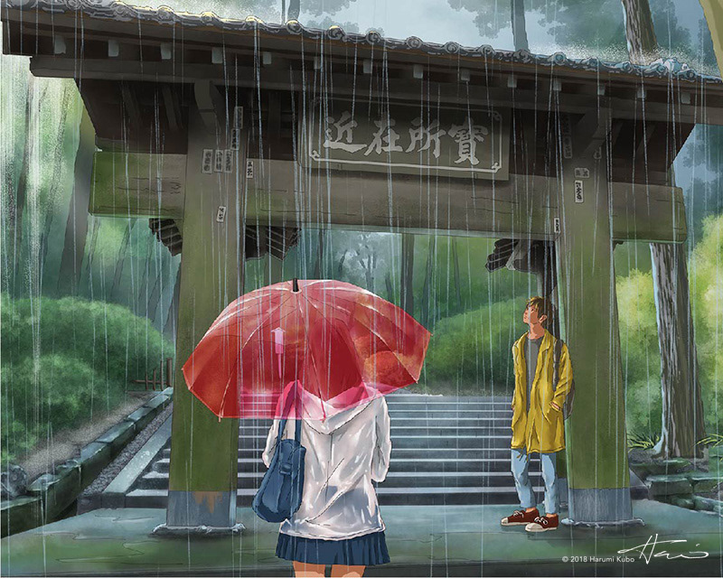 The sun started to shine through the wet trees…so the rain will stop soon. The rain in Kamakura covers this old town with soft green watercolor. Some people love to visit Kamakura on a rainy day. I agree with their choice.