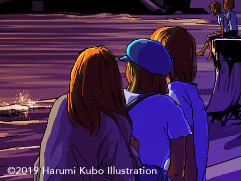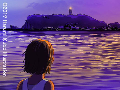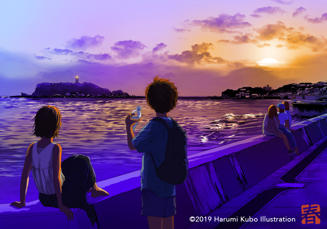 The last light of the sun tints the sky pink, purple and gold, and the ocean reflect the colors of the sky. Sunset from the Shichirigahama parking lot is stunning!