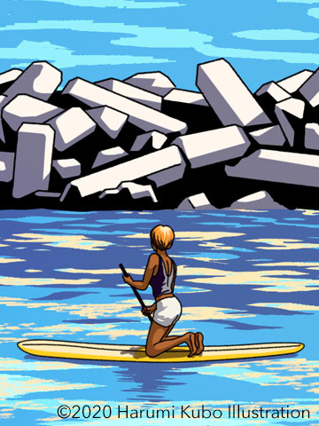 The quiet cove inside the wave block is known as a practice field of SUP (stand-up paddle). On the hot summer day, greetings between a Sup surfer and visitors sound mellow under the mid-afternoon sun.